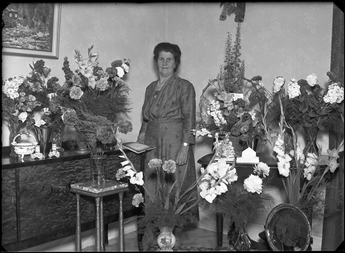 Porträtt, 50-års foto. Fru Karin Karlsson, Box 1033, Hallstahammar.