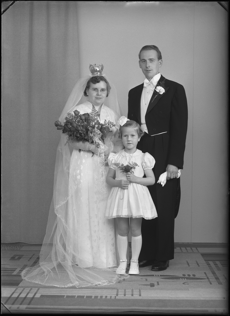 Titel: Grupporträtt, brudpar. Sven Eriksson, Surahammar. Ur Gustaf Åhmans samling.