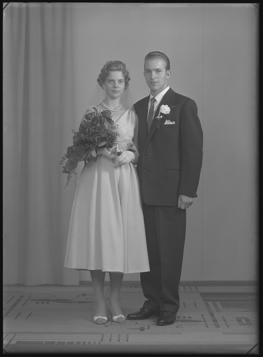 Brudpar. Lars Ingvar Waern, Stationsgat. 8C, Kolbäck. Ur Gustaf Åhmans samling.