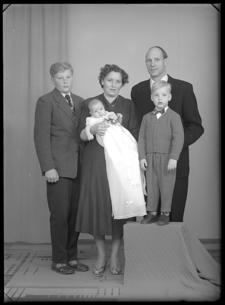 Grupporträtt, dop, fem personer, Åke Nordström, Kyrkbyn, Kolbäck.
