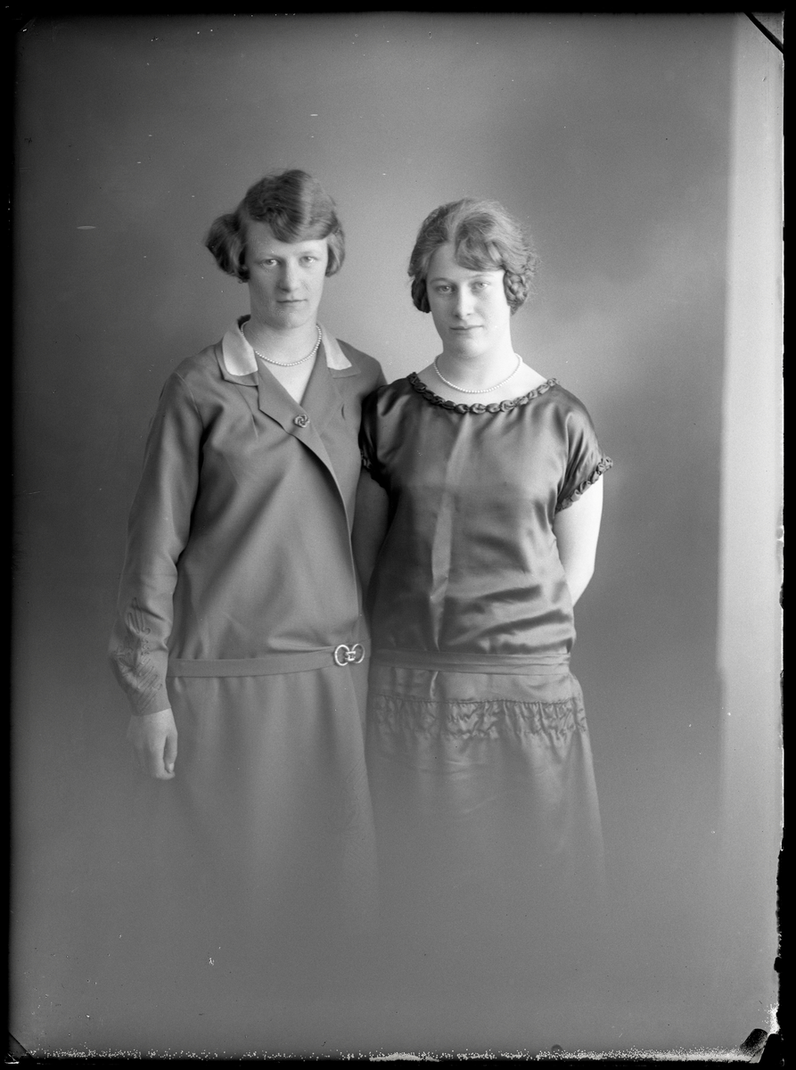Grupporträtt. Elsa och Fanny Berlin, Slussen, Hallstahammar.