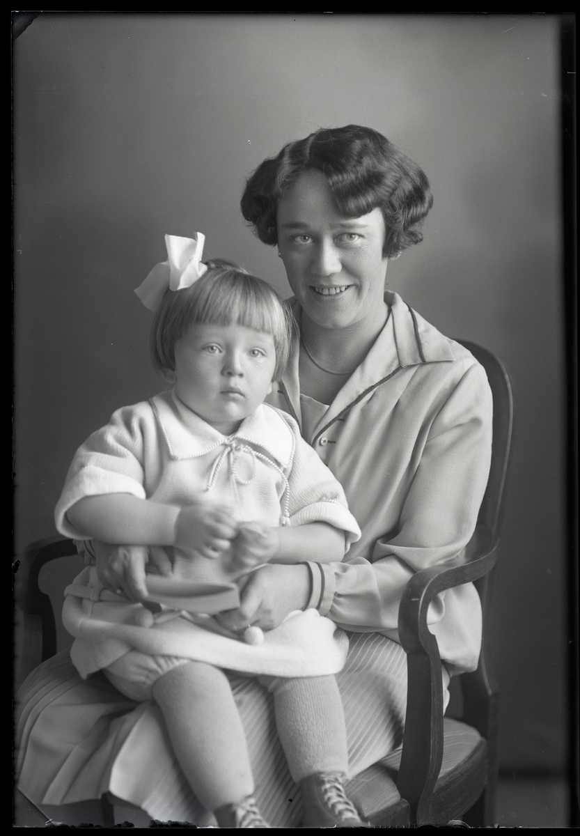 Grupporträtt, kvinna och flicka. Fru Lindholm, Caféet, Kolbäck.