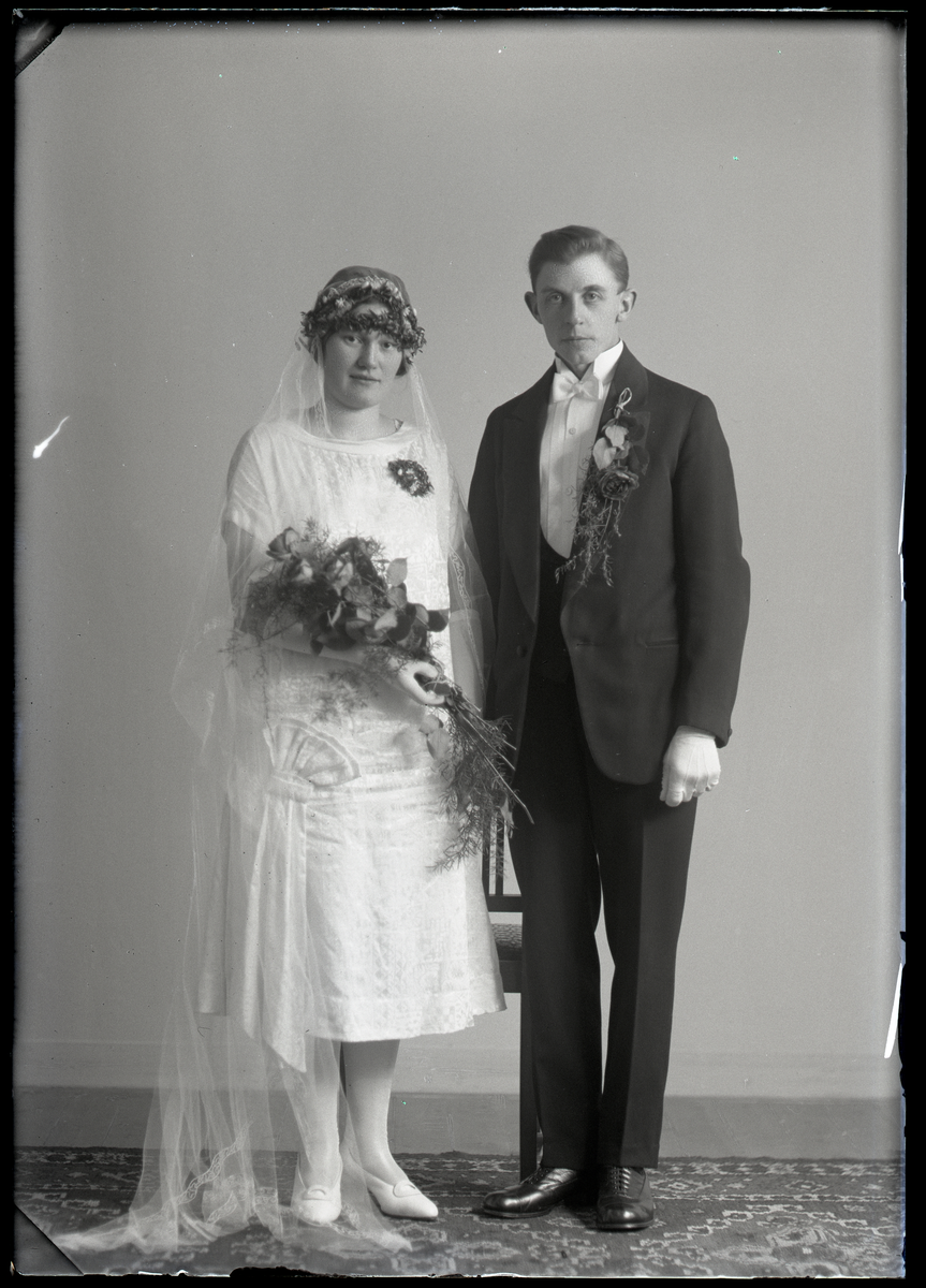 Titel: Brudpar. Nils Öst, Sörstafors. Ur Gustaf Åhmans samling.