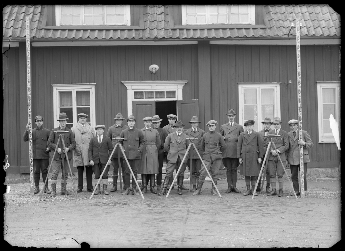 Grupporträtt utomhus 1929. Lantmannaskolan, Kolbäck.