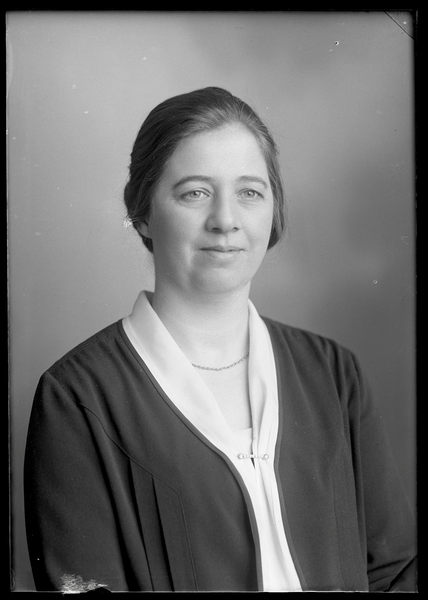 Titel: Kvinnoporträtt. Edna Karlsson, Rallsta Gård, Hallstahammar. Ur Gustaf Åhmans samling.