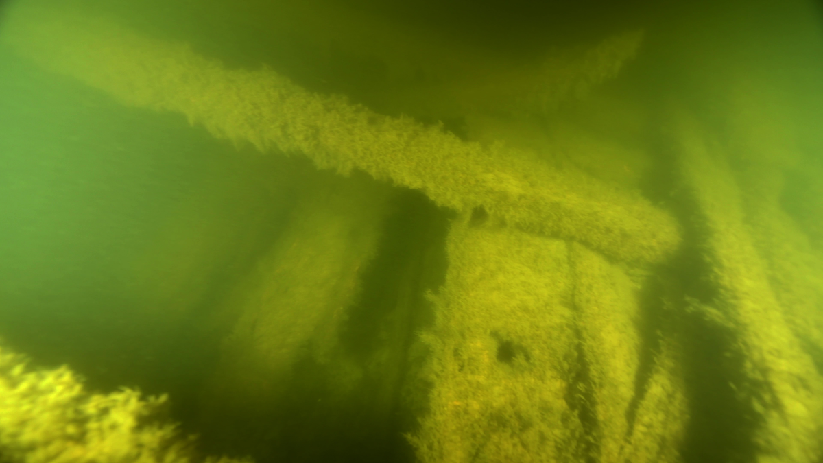 Spant och bordläggning på insidan.