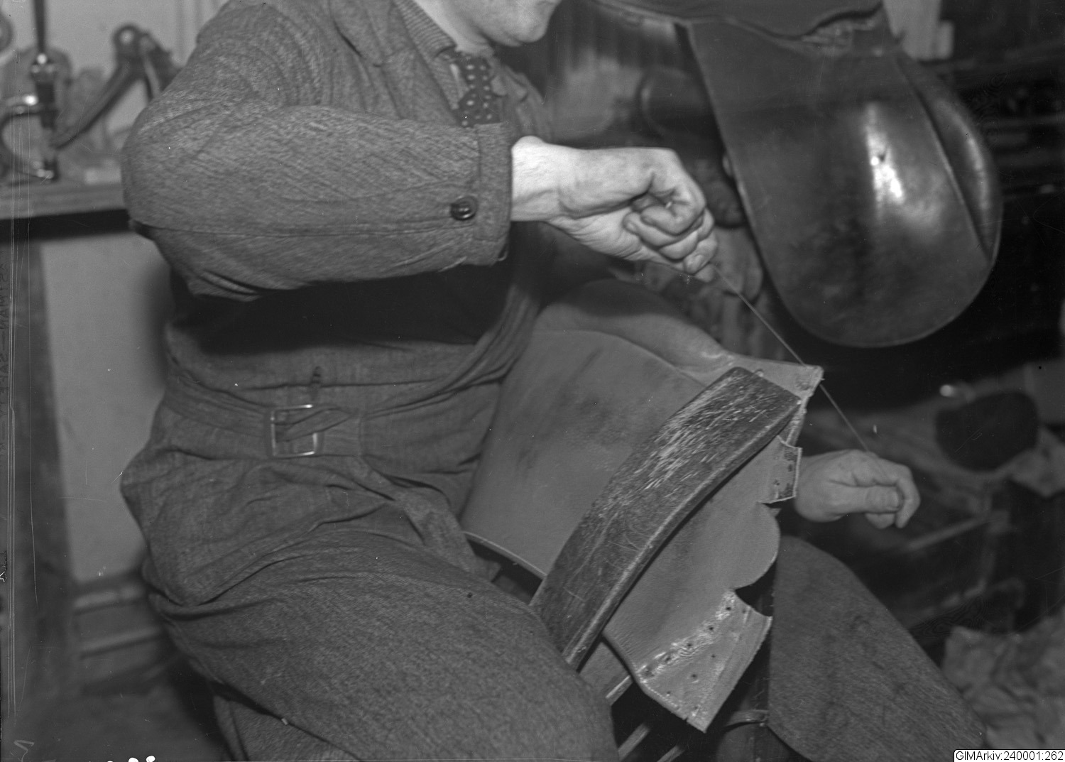 Förvarad i kuvert med texten: "Sadelmakare i arbete