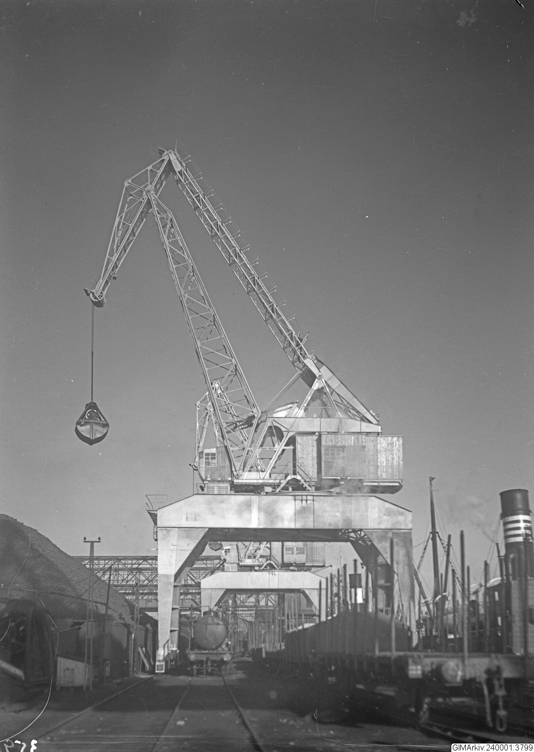 Förvarad i kuvert med texten: "Hamnkranar på räls"