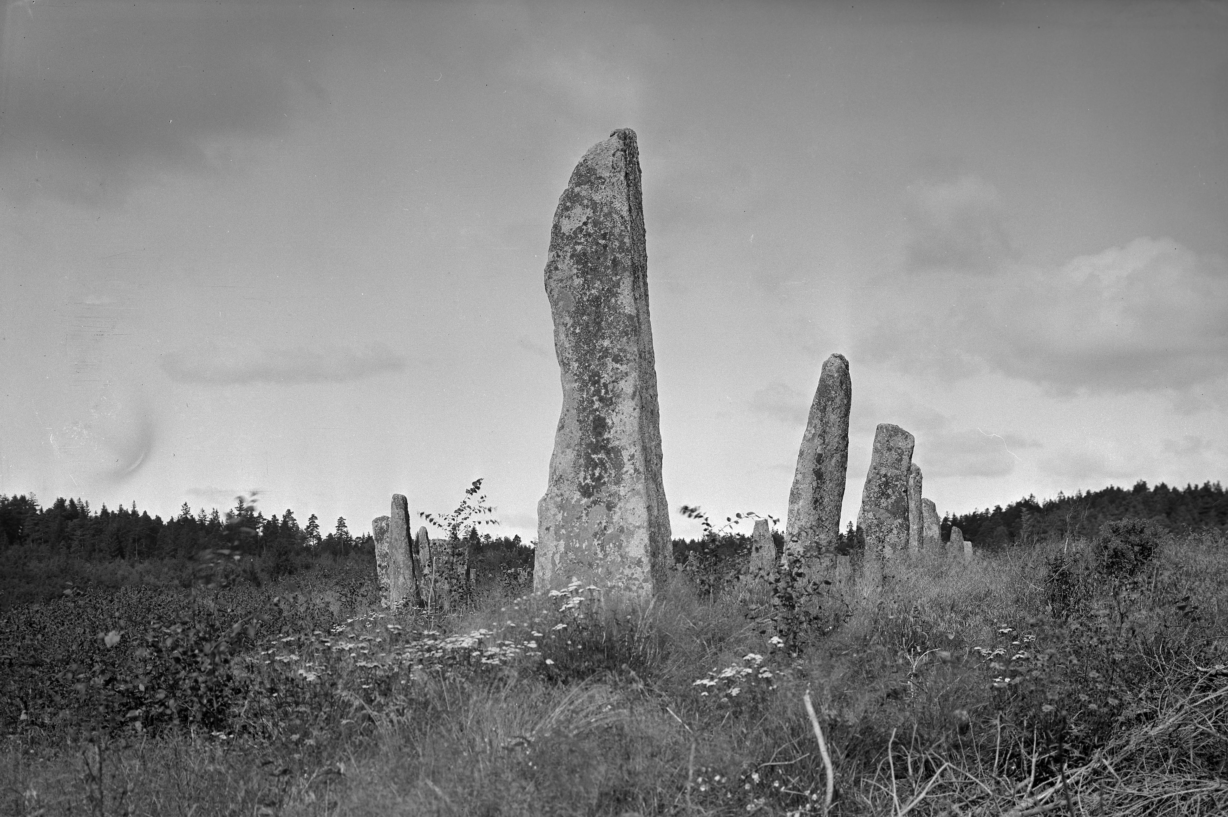 Blomsholm. Sveriges tredje största skeppssättning, Skee 343:1(4). Bilden troligen från mitten av 1960-talet.