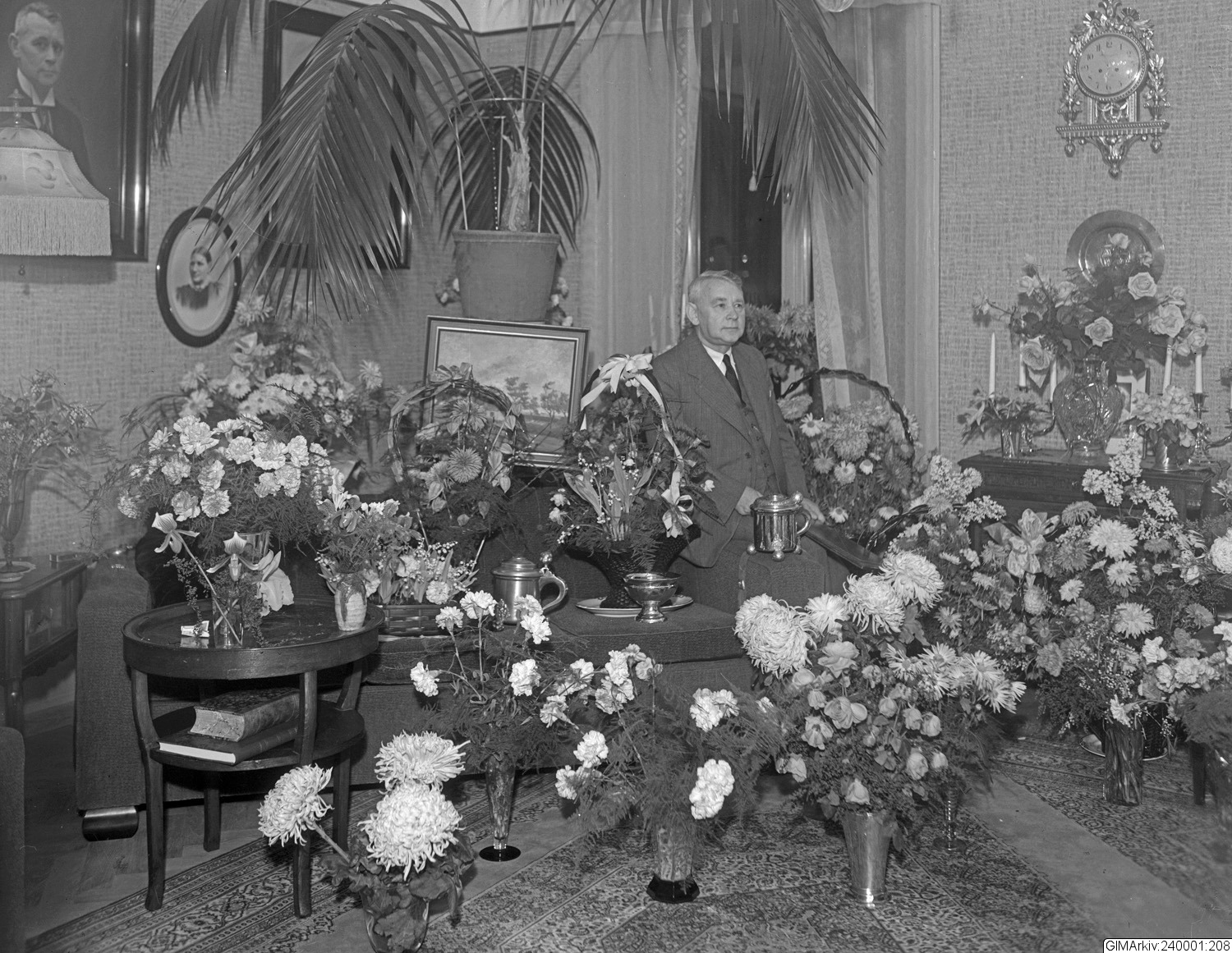 Förvarad i kuvert med texten: "Äldre man firas med blommor