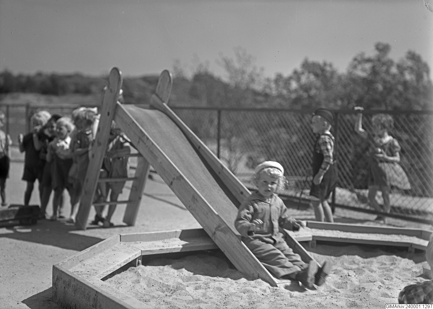 Förvarad i kuvert med texten: "Solgårdar. Lekande barn