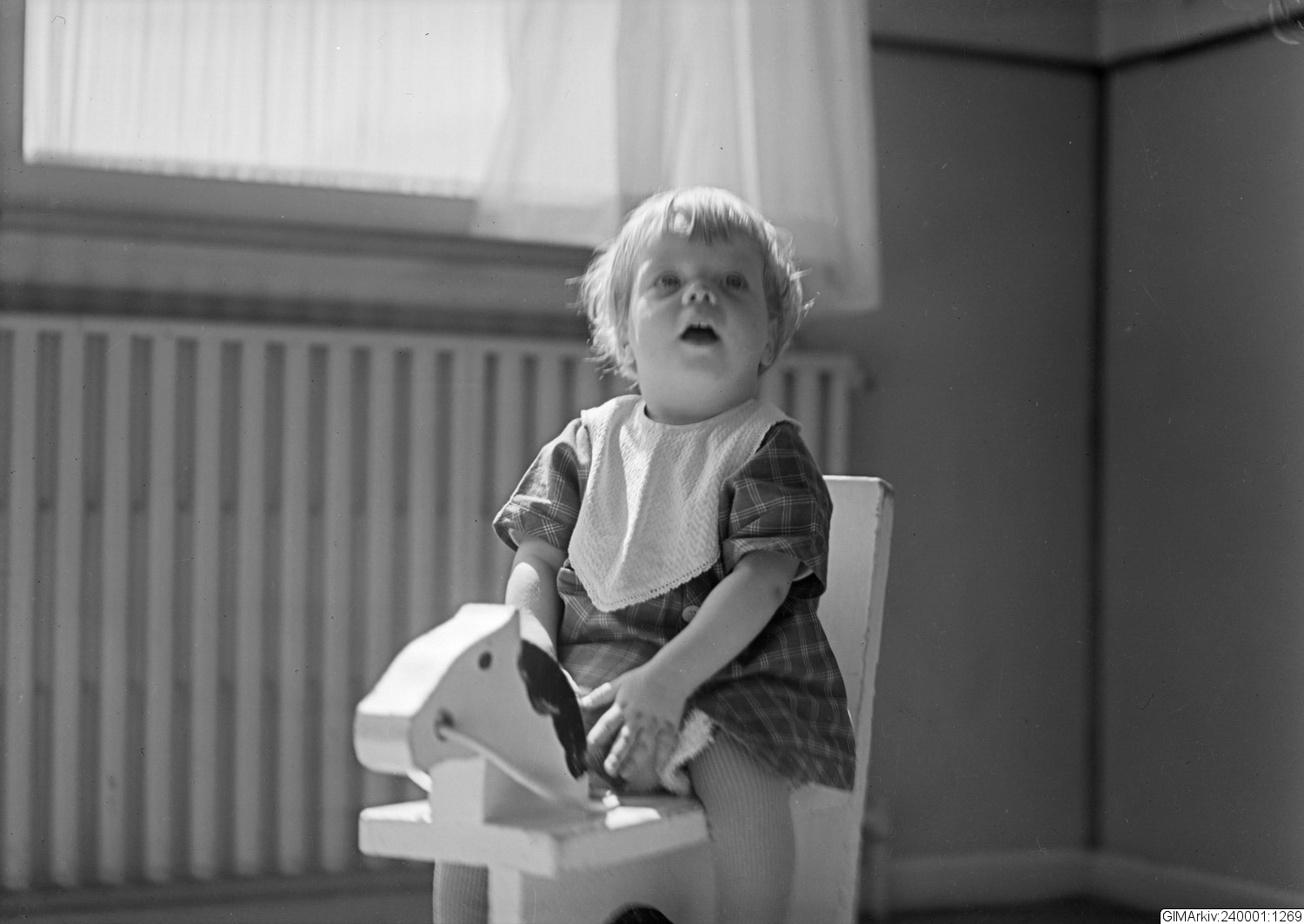 Förvarad i kuvert med texten: "Solgårdar. Flicka på gunghäst