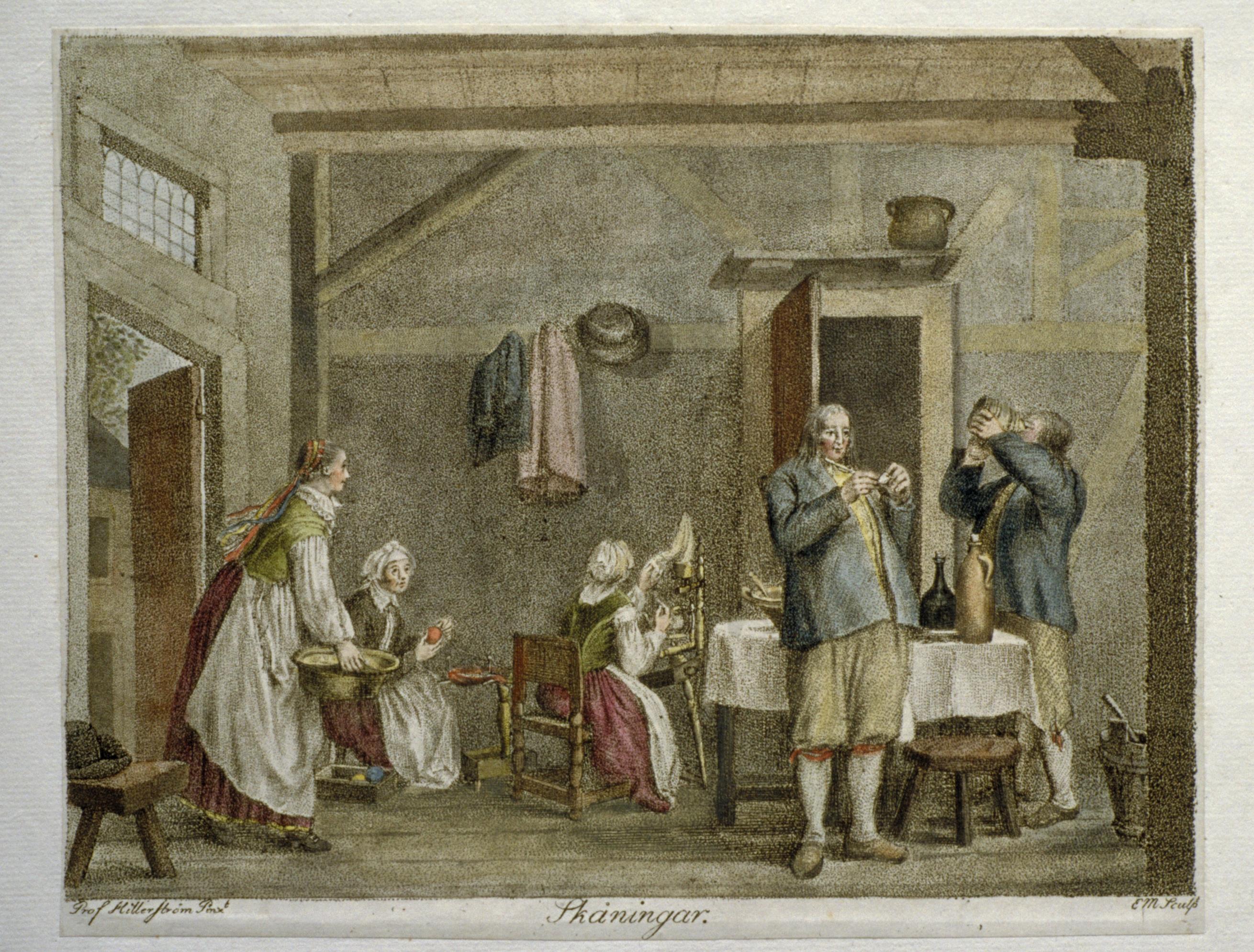 Akvarellerad punktgravyr av Fredrik Erik Martin efter Pehr Hilleström, från 1790-talet. (Socken och kommun kan inte säkert anges).