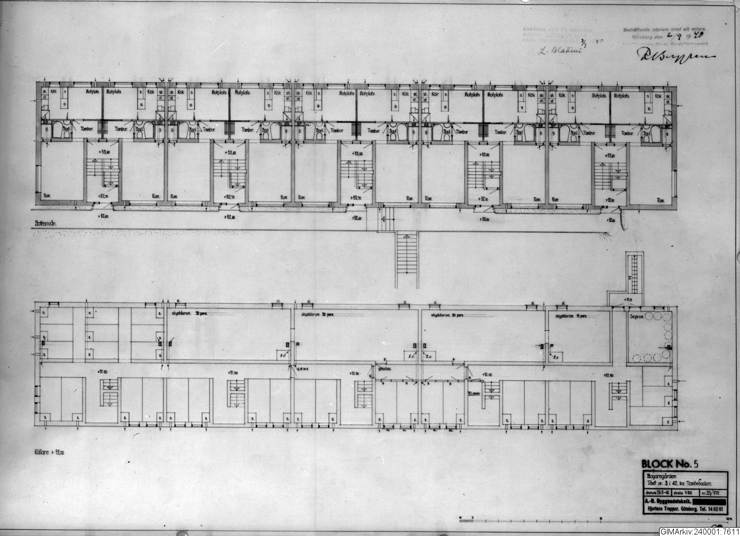 Förvarad i kuvert med texten: "Ritning, Byggmästare Blomqvist"