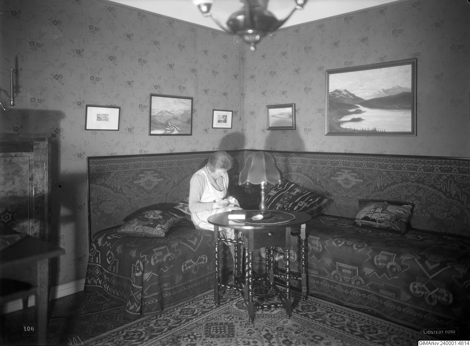 Förvarad i kuvert med texten: "HSB, heminteriör, med kvinna"
