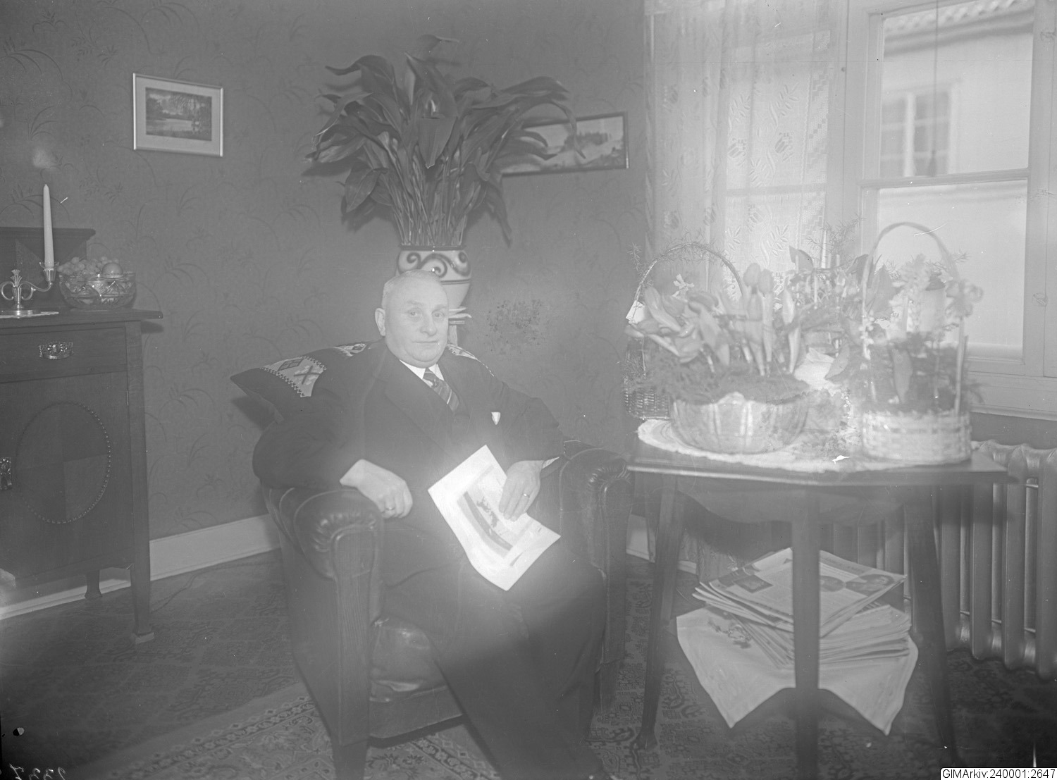 Förvarad i kuvert med texten: "Äldre herre i fåtölj"