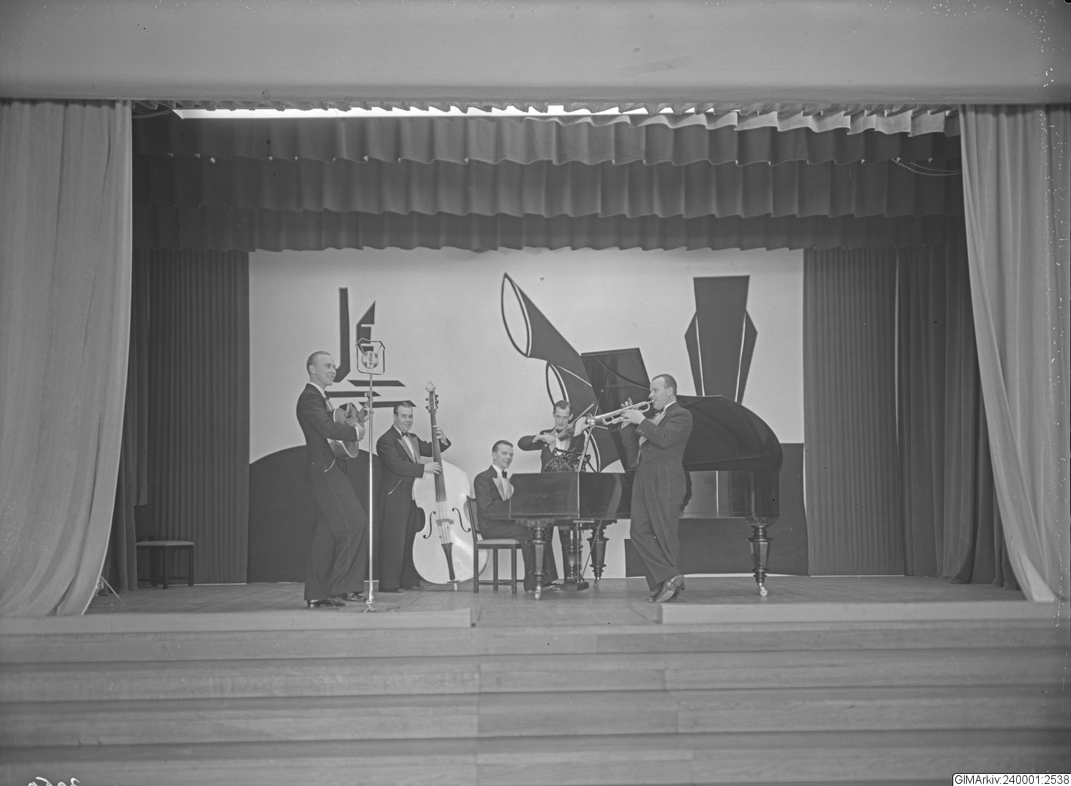 Förvarad i kuvert med texten: "Orkester. Band på scen"