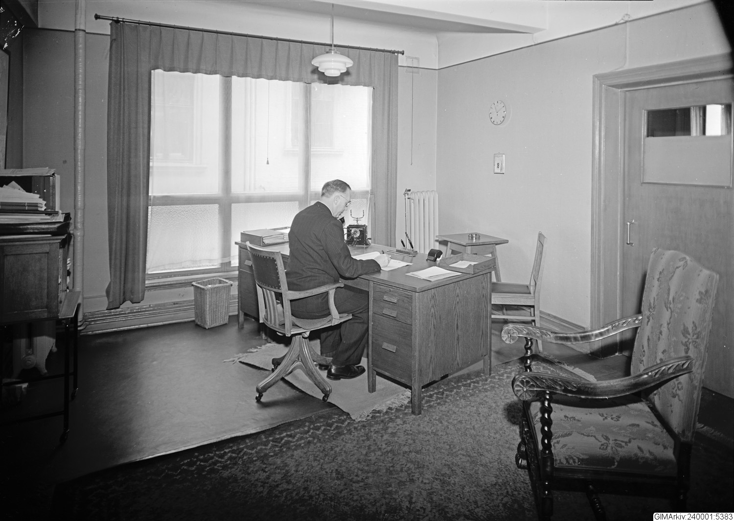 Förvarad i kuvert med texten: "Gustav Fagerberg. Man vid skrivbord"