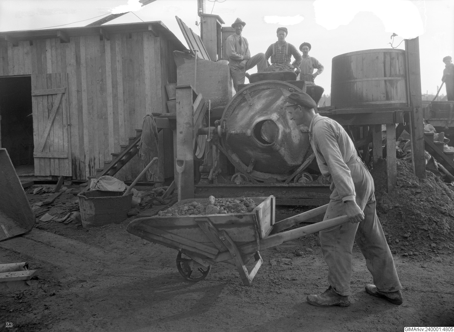 Förvarad i kuvert med texten: "HSB, byggplats med arbetare"