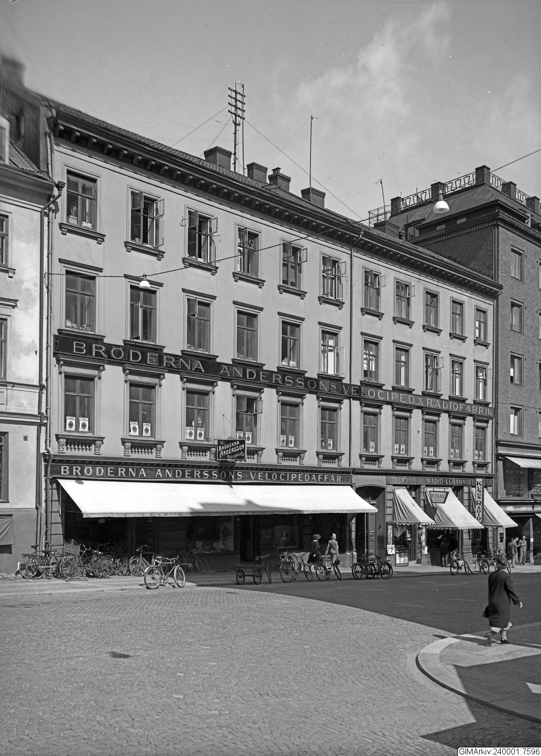 Förvarad i kuvert med texten: "Stadsmiljö, butiksexteriör, Bröderna Anderssons Velocipedaffär"