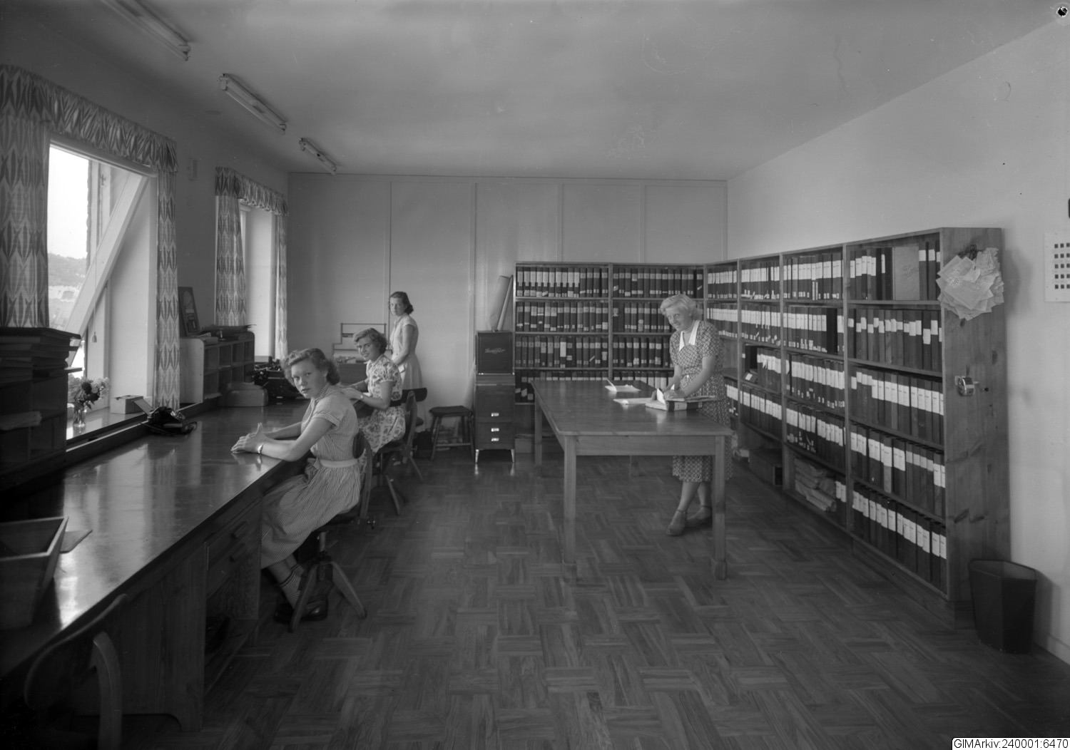 Förvarad i kuvert med texten: "Kontorsinteriör och personal, Sjöberg & Bengtsson"
