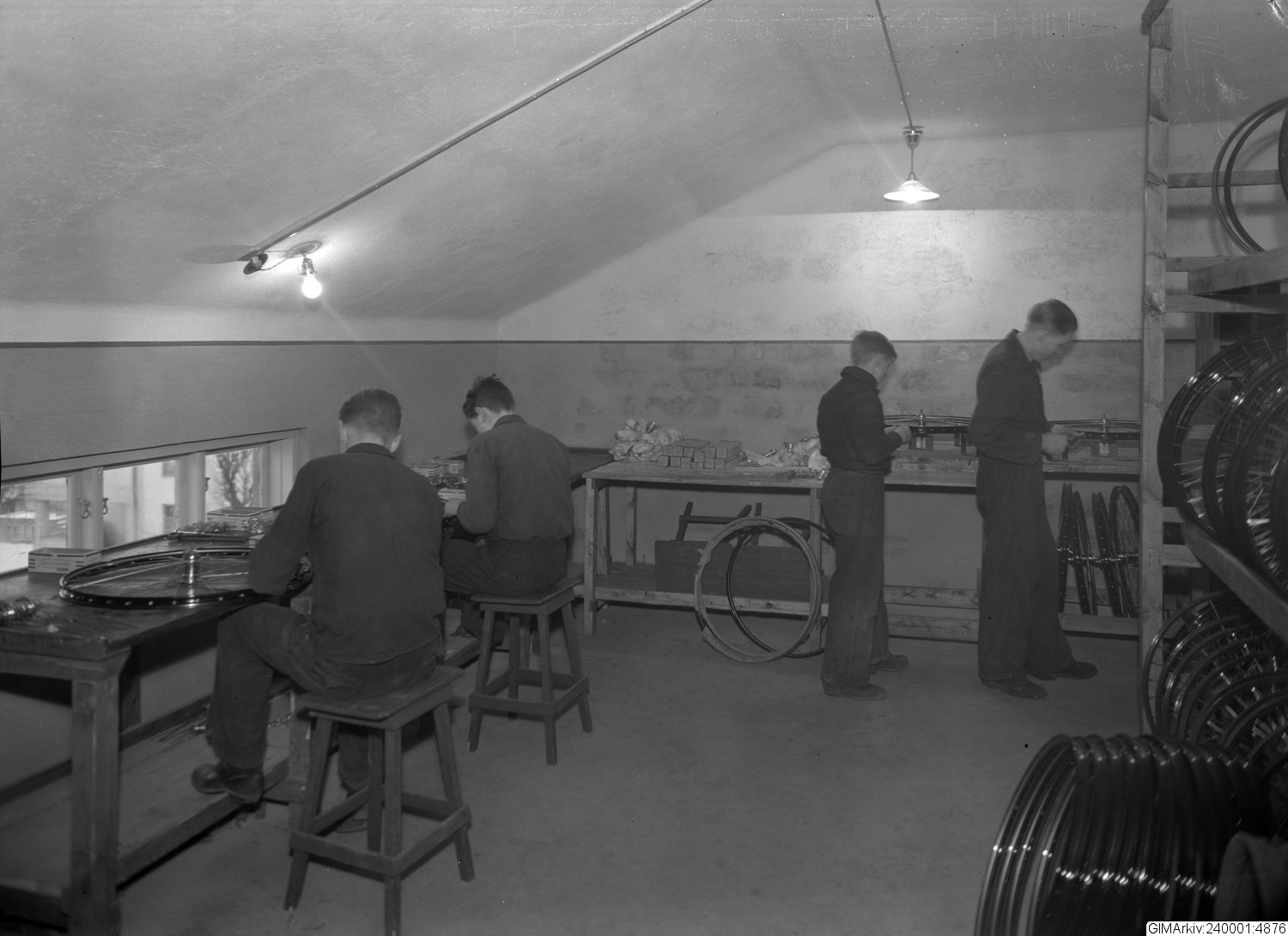 Förvarad i kuvert med texten: "Cykelfabrik, interiör, Värnamo Gummi- och Cykelfabrik"