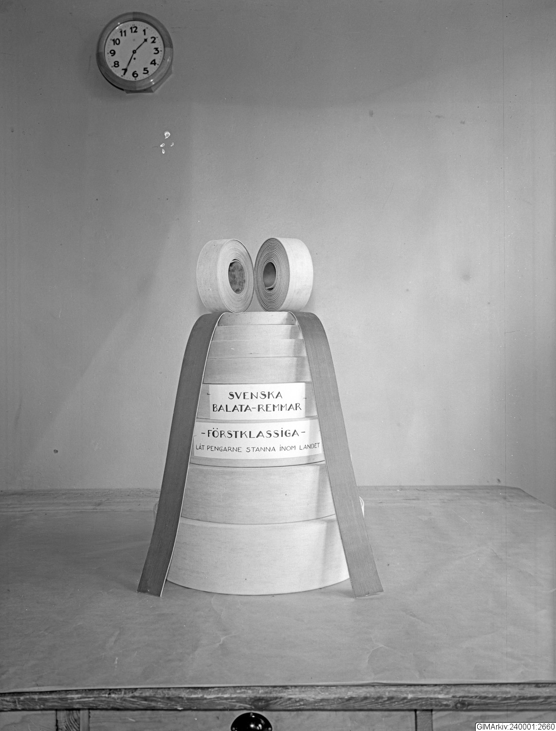 Förvarad i kuvert med texten: "AB Skandinaviska Remfabriken. Balataremmar"