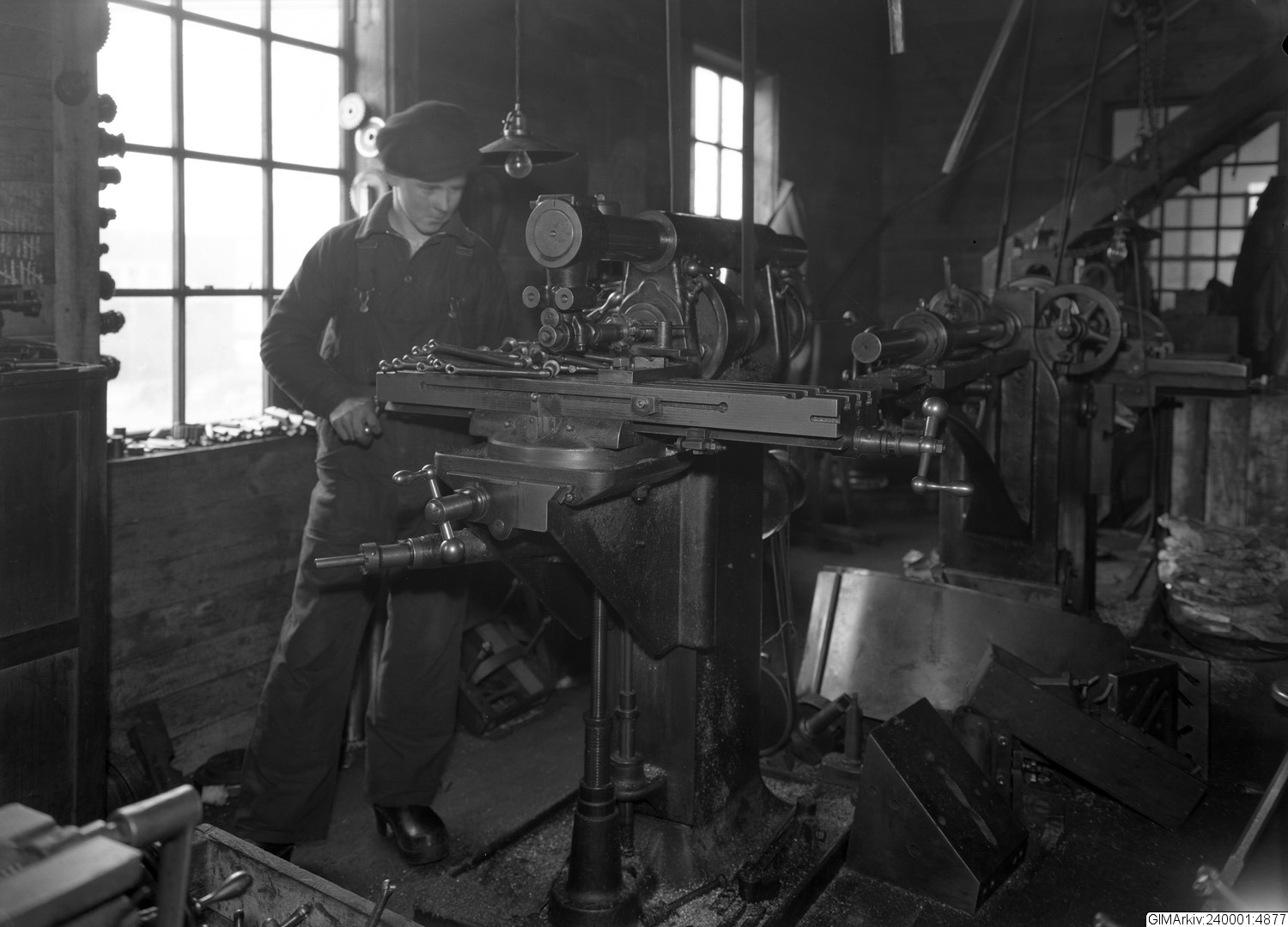 Förvarad i kuvert med texten: "Cykelfabrik, interiör, Värnamo Gummi- och Cykelfabrik"