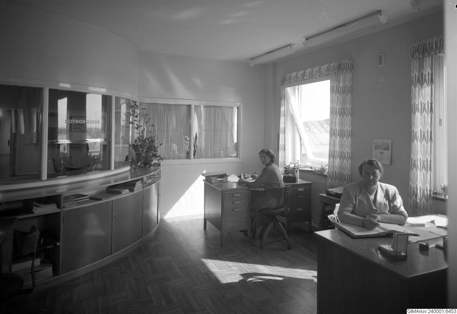 Beskrivning: Förvarad i kuvert med texten: "Kontorsinteriör och personal, Sjöberg & Bengtsson"