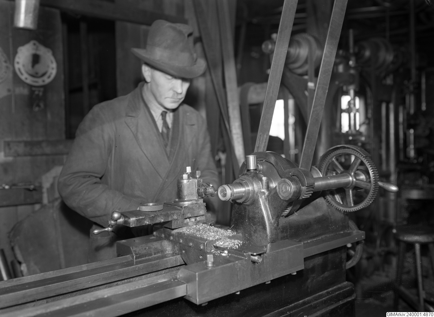 Förvarad i kuvert med texten: "Cykelfabrik, interiör, Värnamo Gummi- och Cykelfabrik"