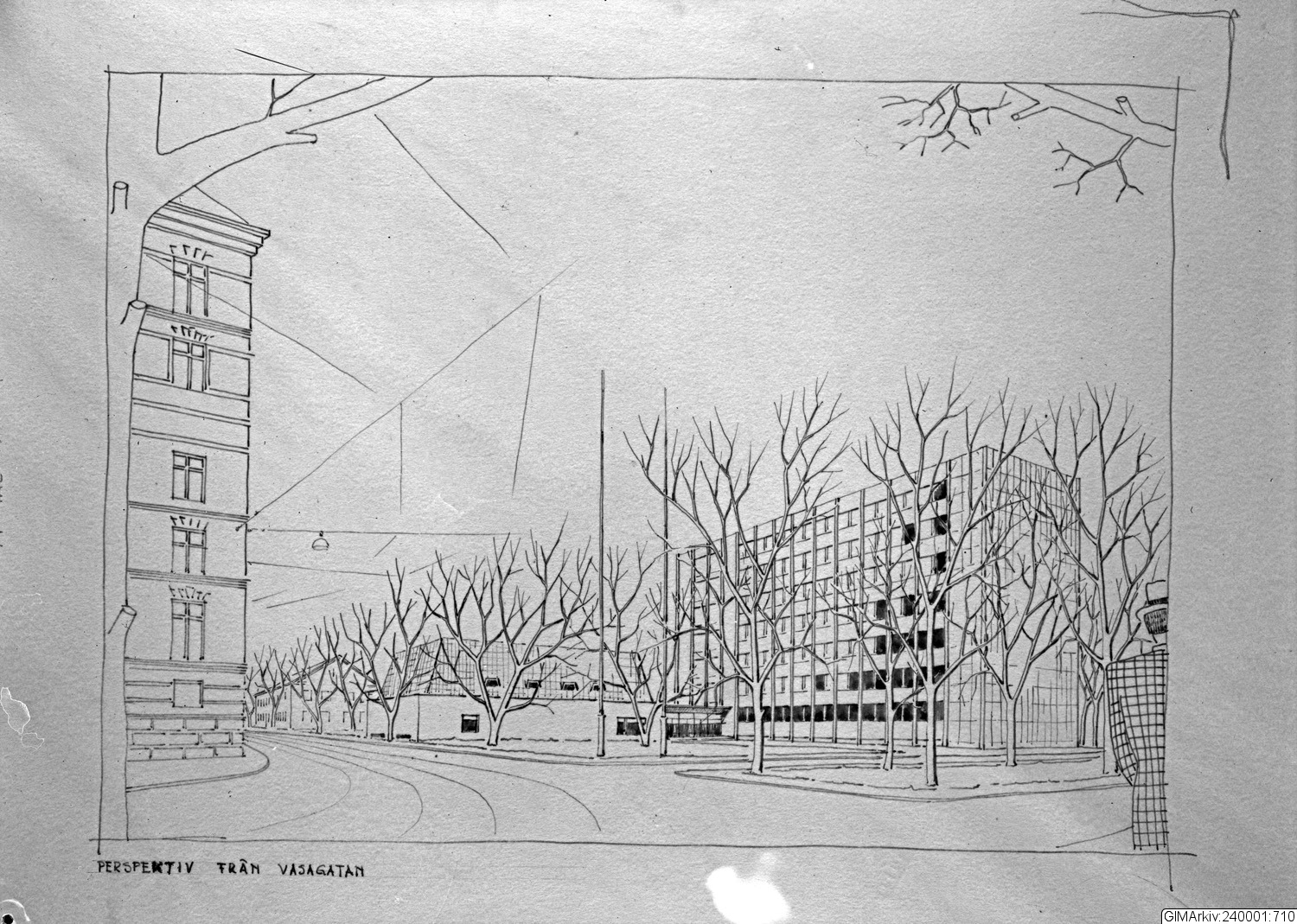 Beskrivning: Förvarad i kuvert med texten: "Ritningar, teckningar Handelshögskolan i Gbg.