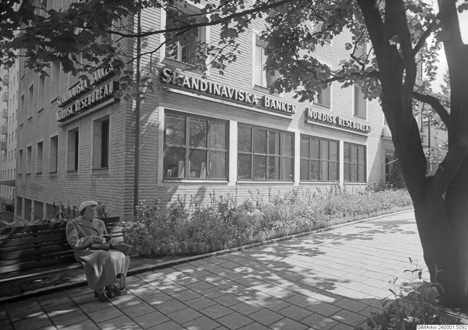 Förvarad i kuvert med texten: "Affärsfastighet. Skandinaviska Banken. Nordisk Resebureau"