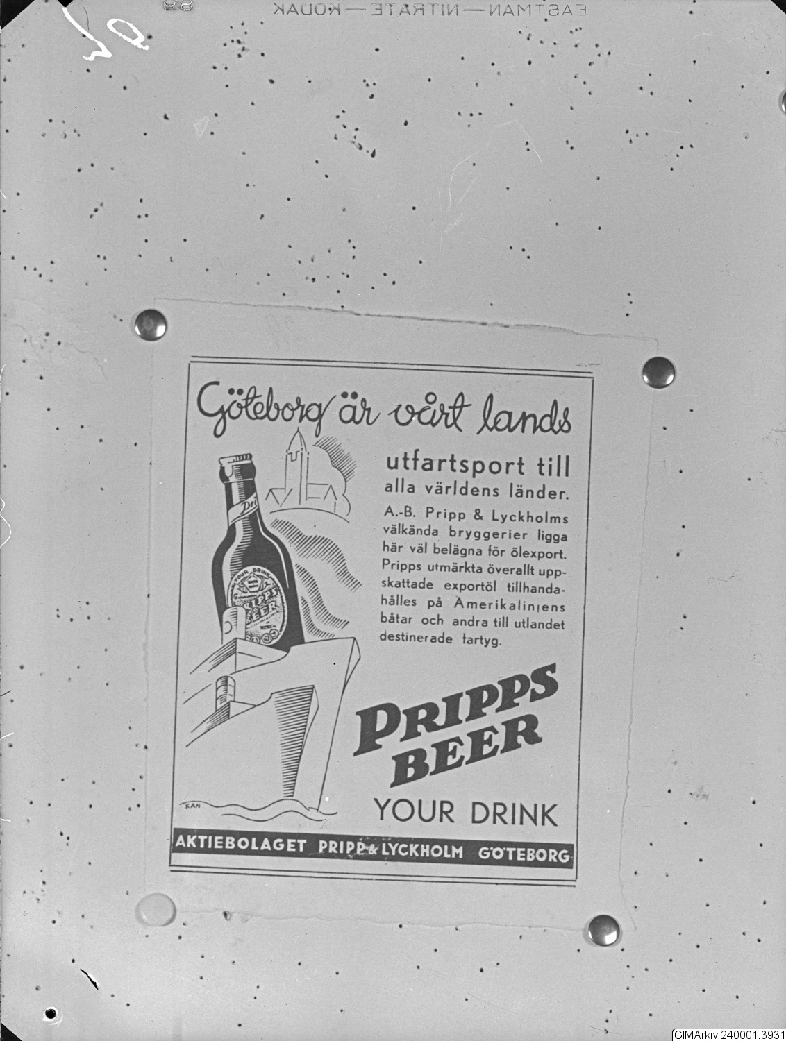 Förvarad i kuvert med texten: "Pripp & Lyckholms Stampen. Reklamskyltar"
