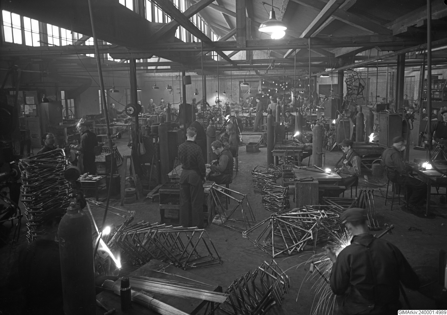 Beskrivning: Förvarad i kuvert med texten: "Monark Cykelfabrik. Interiör. Produktionen"