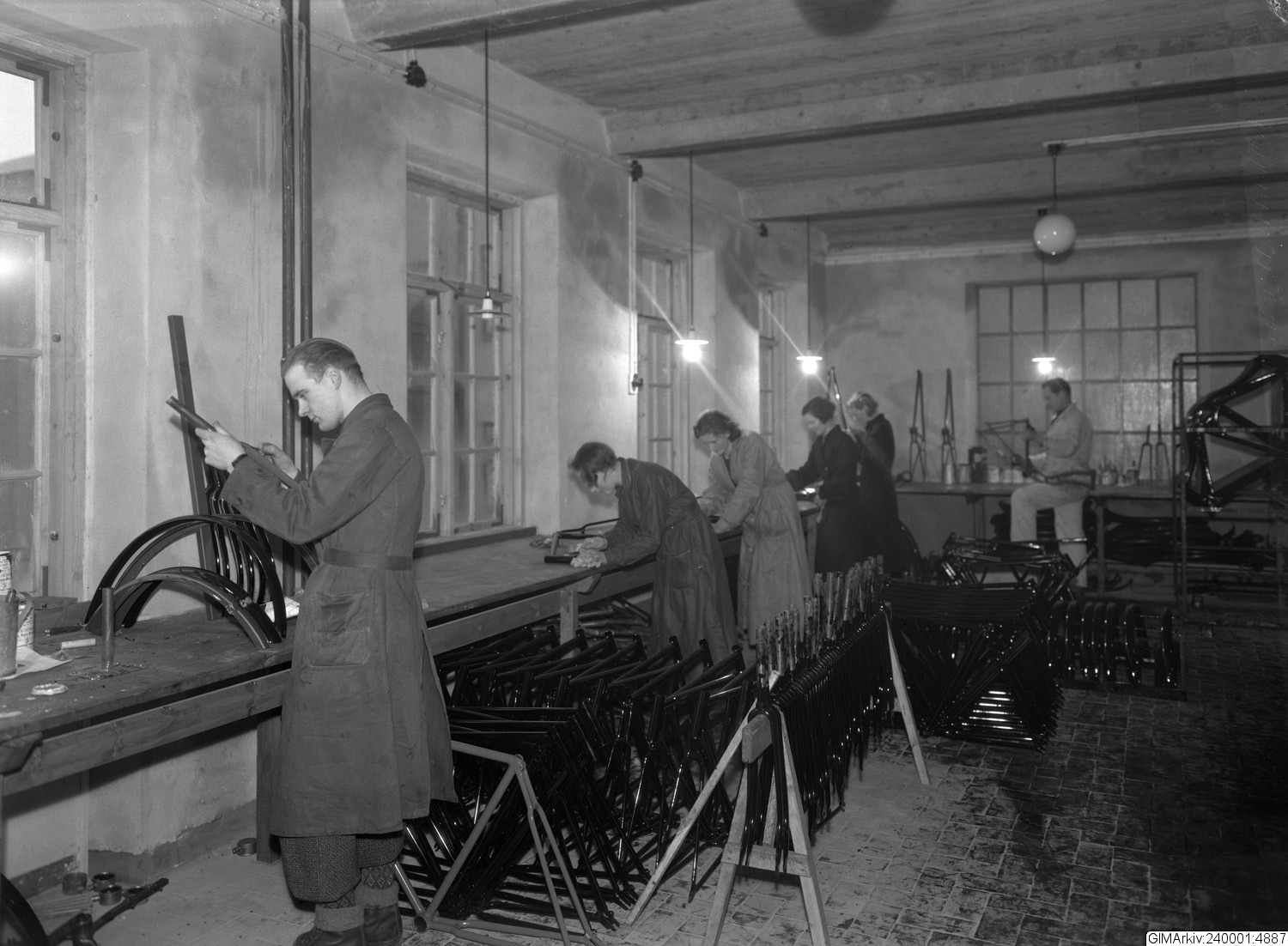 Beskrivning: Förvarad i kuvert med texten: "Cykelfabrik, interiör, Värnamo Gummi- och Cykelfabrik"