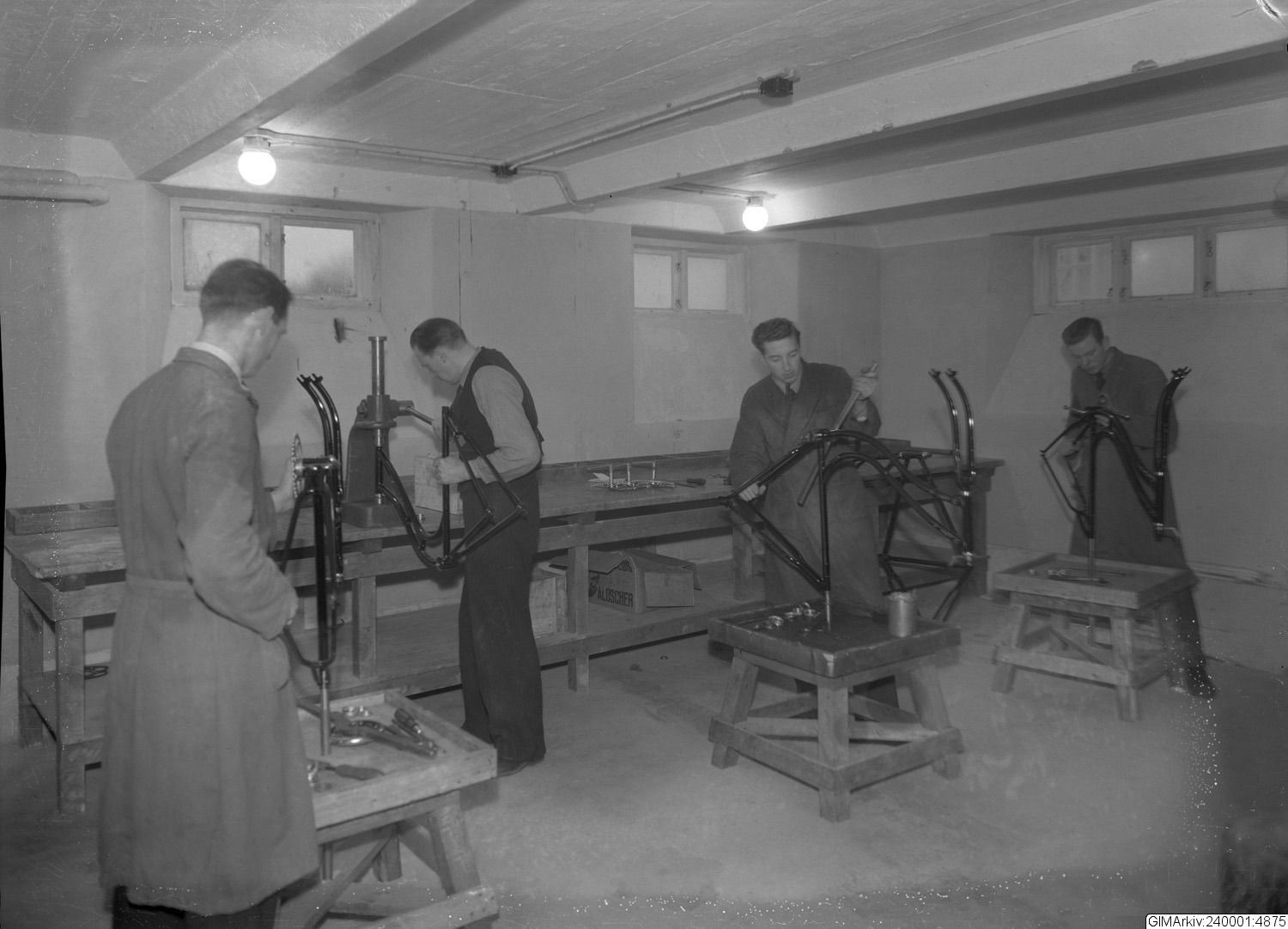 Beskrivning: Förvarad i kuvert med texten: "Cykelfabrik, interiör, Värnamo Gummi- och Cykelfabrik"