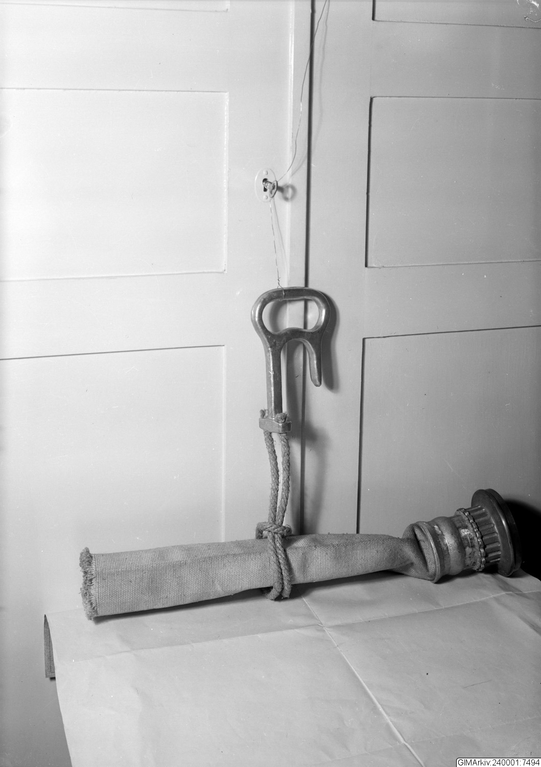 Förvarad i kuvert med texten: "Brandutrustning, upphängningsanordning"