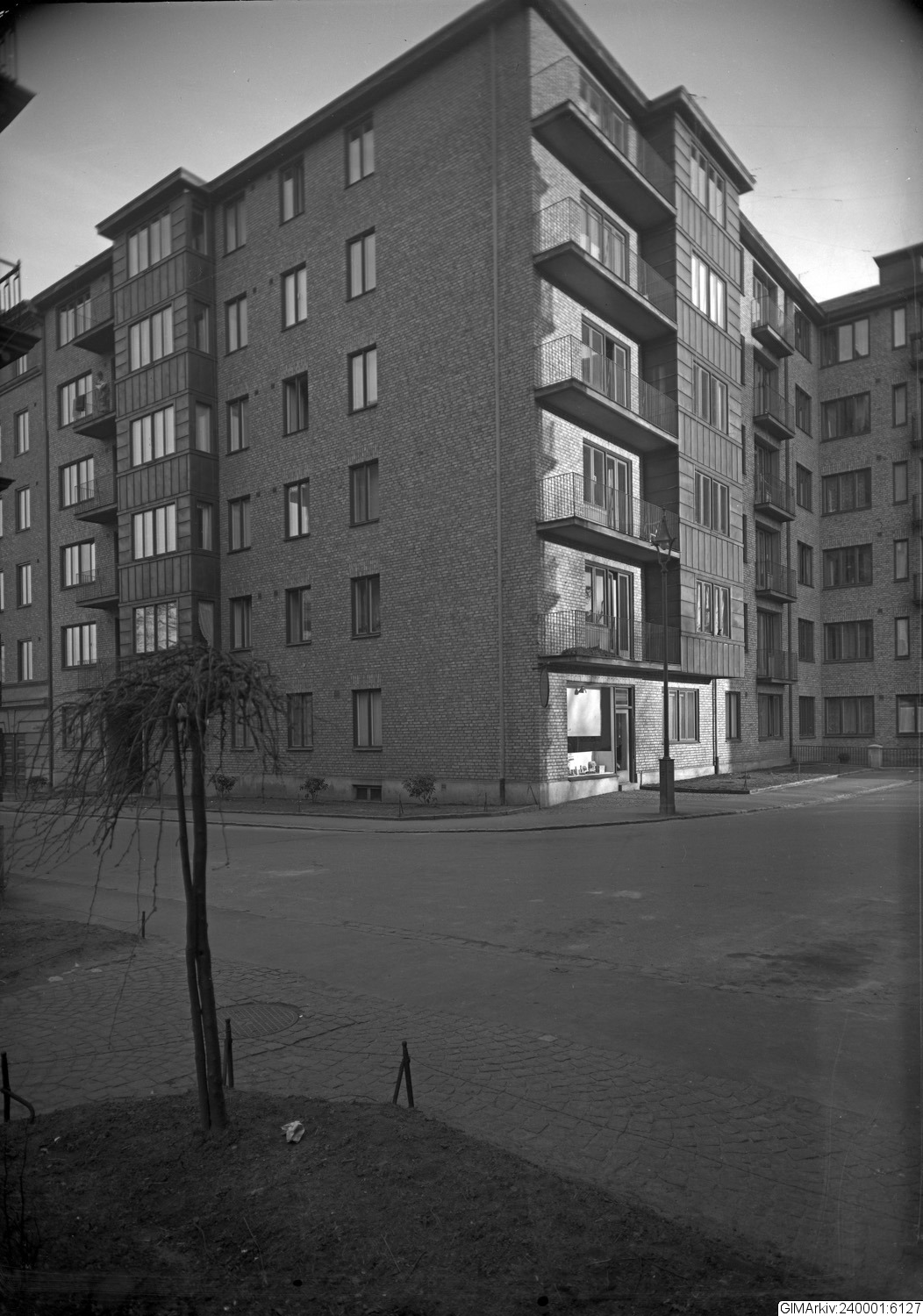 Förvarad i kuvert med texten: "Hyreshus, mm, Byggm. J. Alfred Olsson"