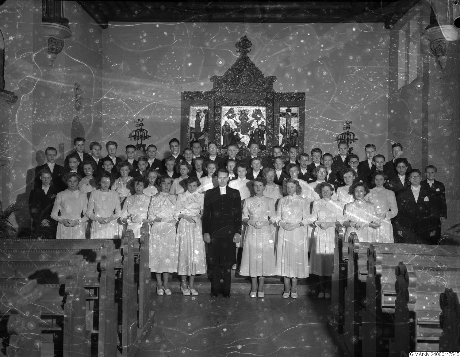 Förvarad i kuvert med texten: "Gruppbild, konfirmander. Krackelerat"