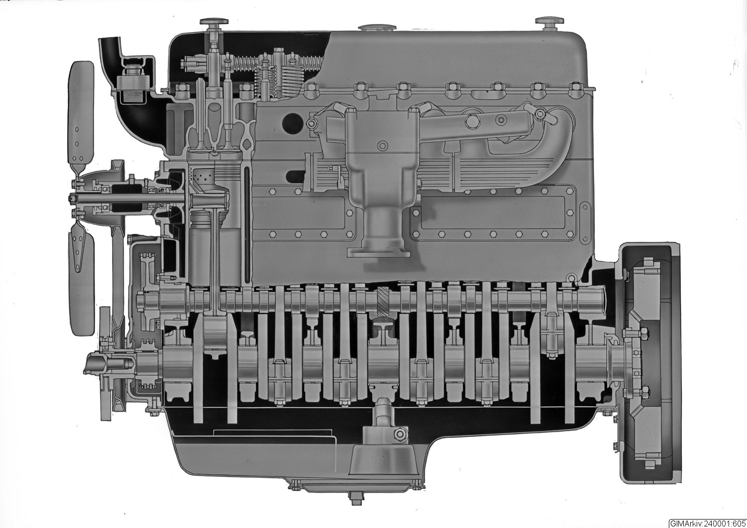 Förvarad i kuvert med texten: "Längdsektion förbränningsmotor PETIT.