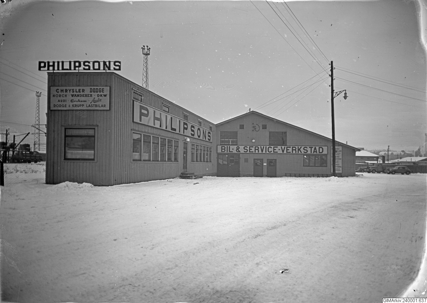 Förvarad i kuvert med texten: "Bilfirma exteriör Philipson.
