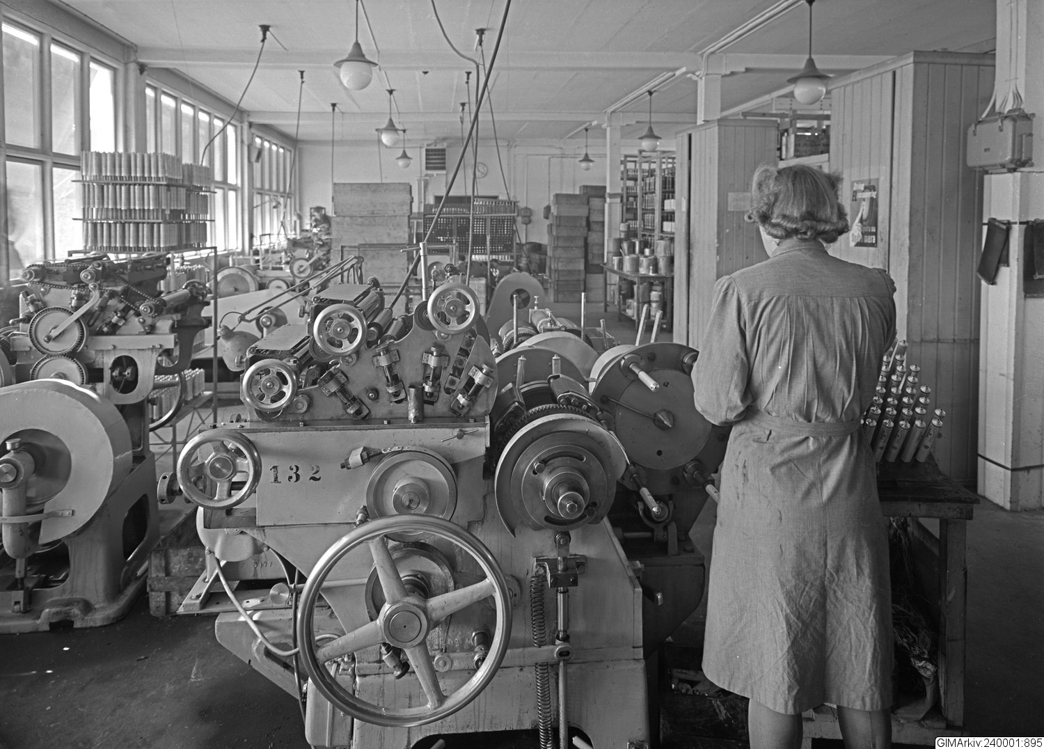 Förvarad i kuvert med texten: "Fabriksinteriör. Gbgs Kapsylfabrik
