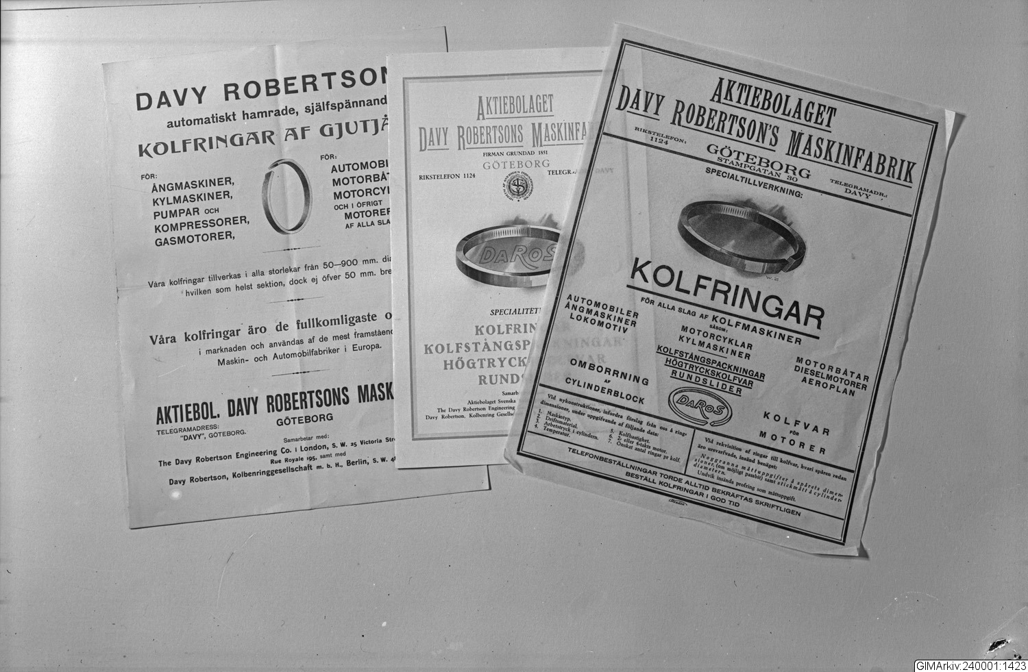 Förvarad i kuvert med texten: "Daros Reklam mm. Davy Robertson