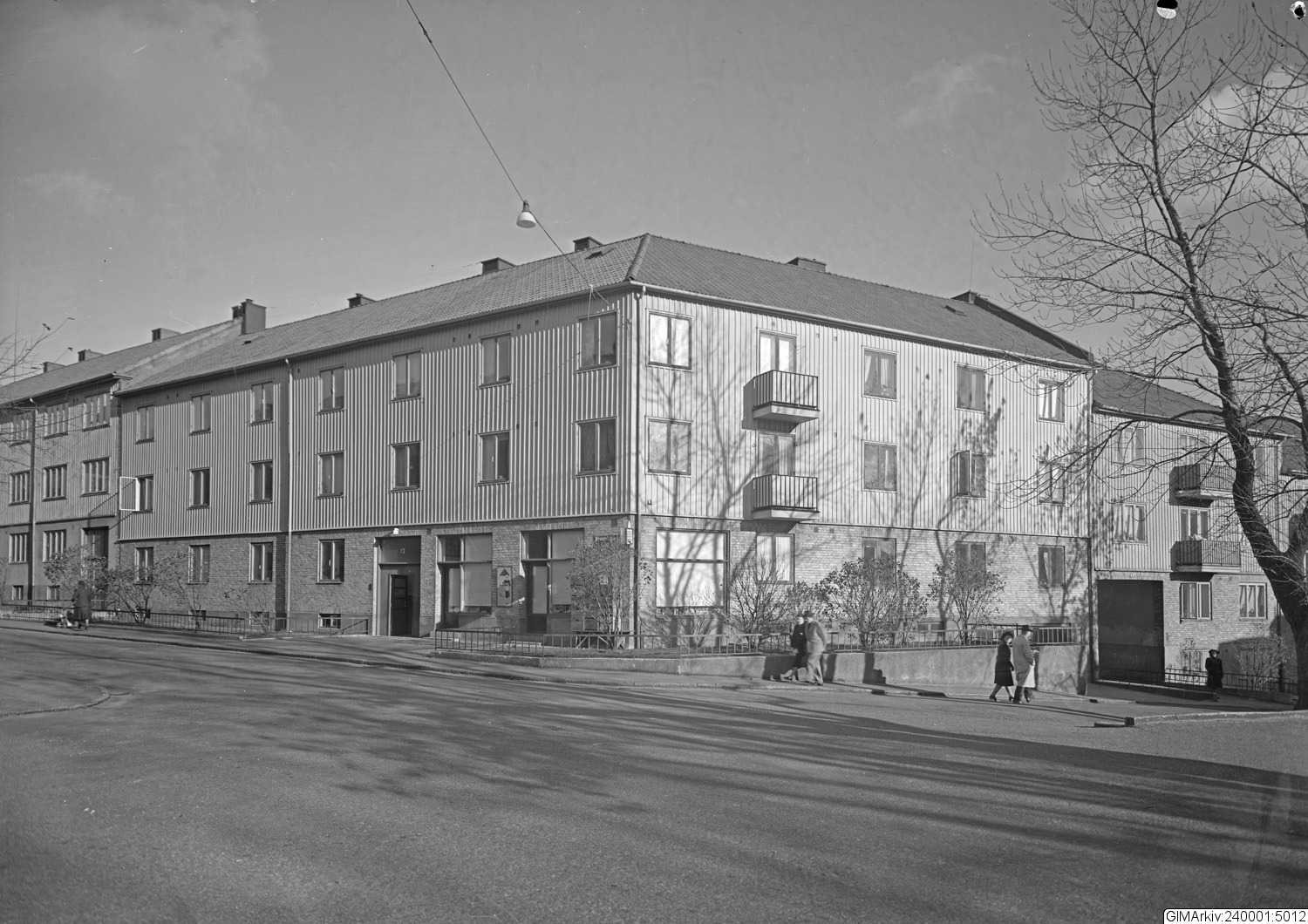 Förvarad i kuvert med texten: "Byggmäst. Nyström. Hyreshus. Wrangelsg. x Lundg."