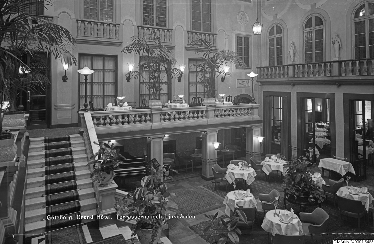 Förvarad i kuvert med texten: "Grand Hotell. Vykort mm. Terasser. Ljusgård"