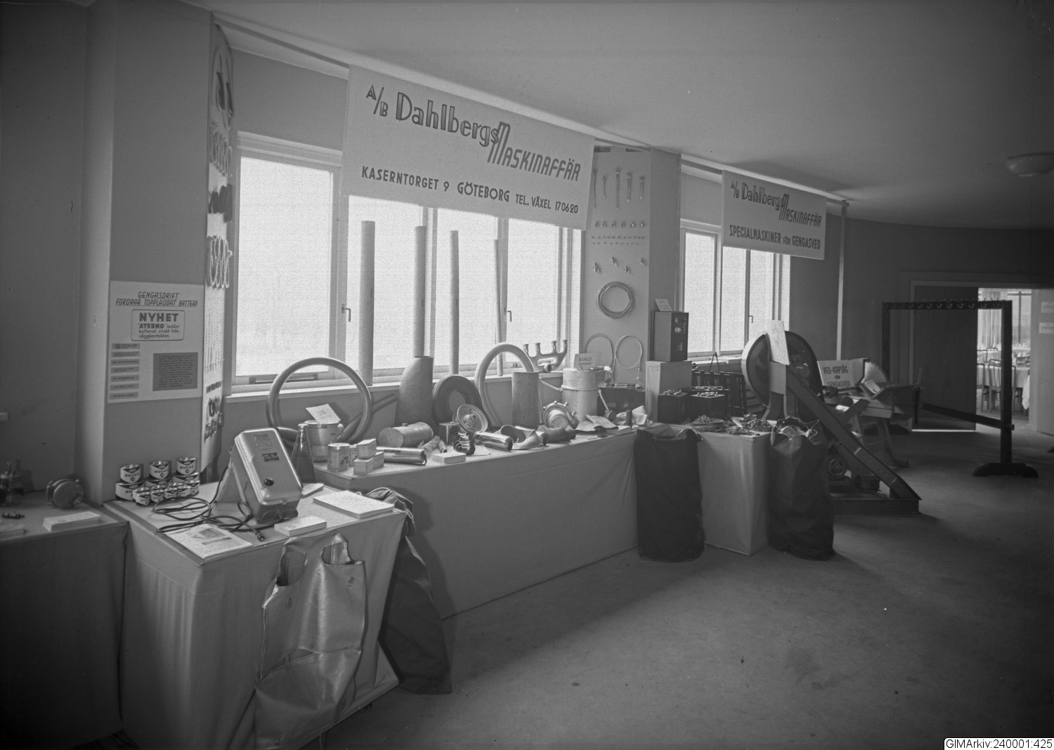 Förvarad i kuvert med texten: "Gengasutställning -40. AB Dahlbergs Maskinaffär