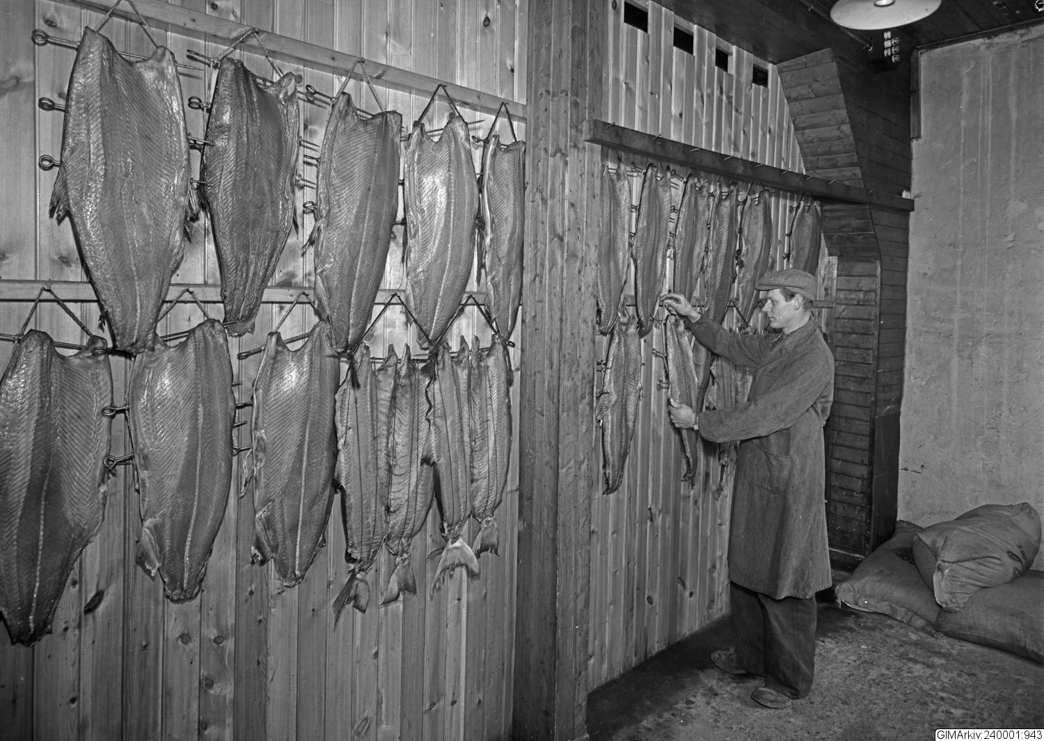 Beskrivning: Förvarad i kuvert med texten: "Rökeri. interriör. Hamdahl Co