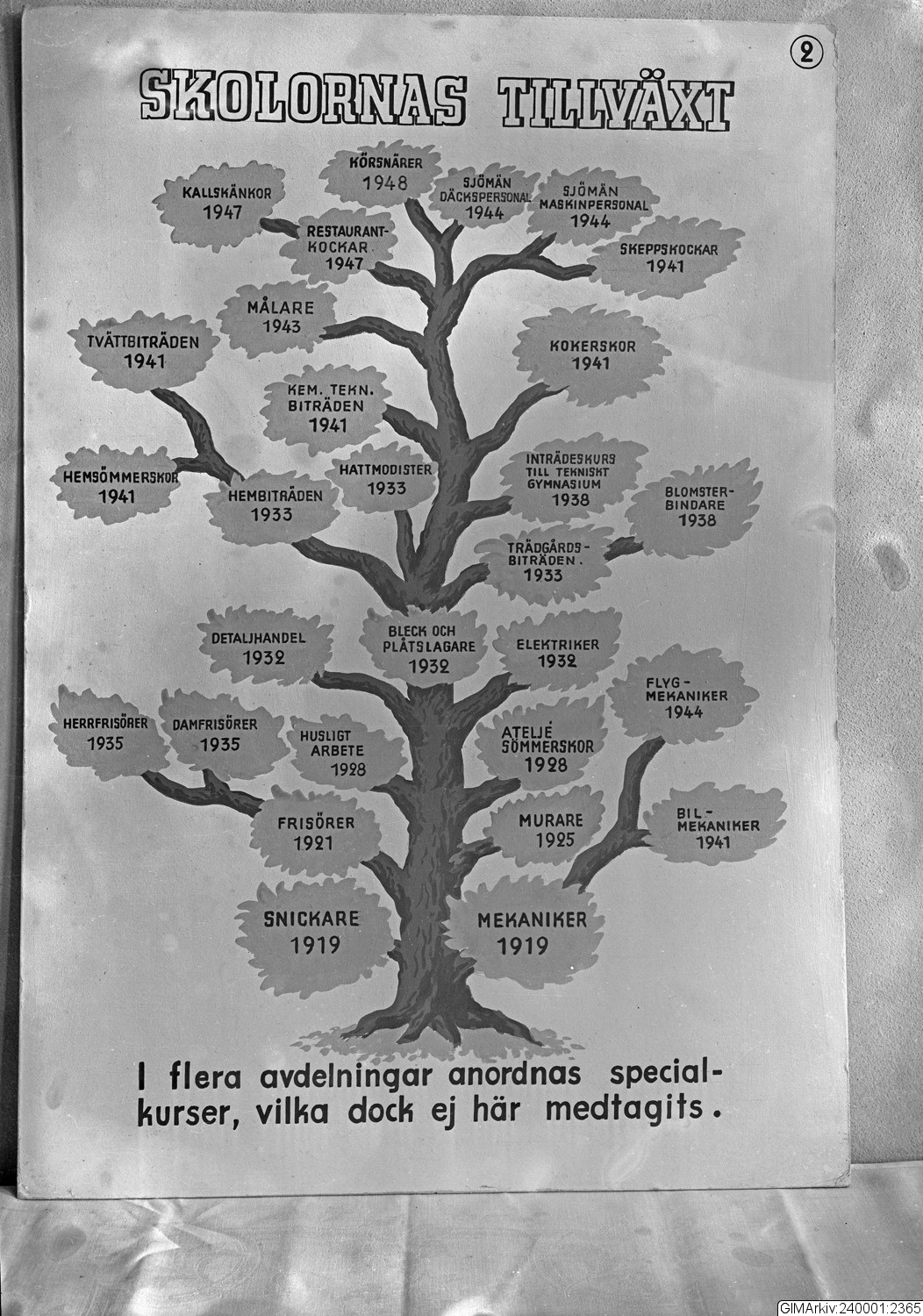 Förvarad i kuvert med texten: "Informationsskylt. Gbgs. Yrkesskolor. Juni-49."