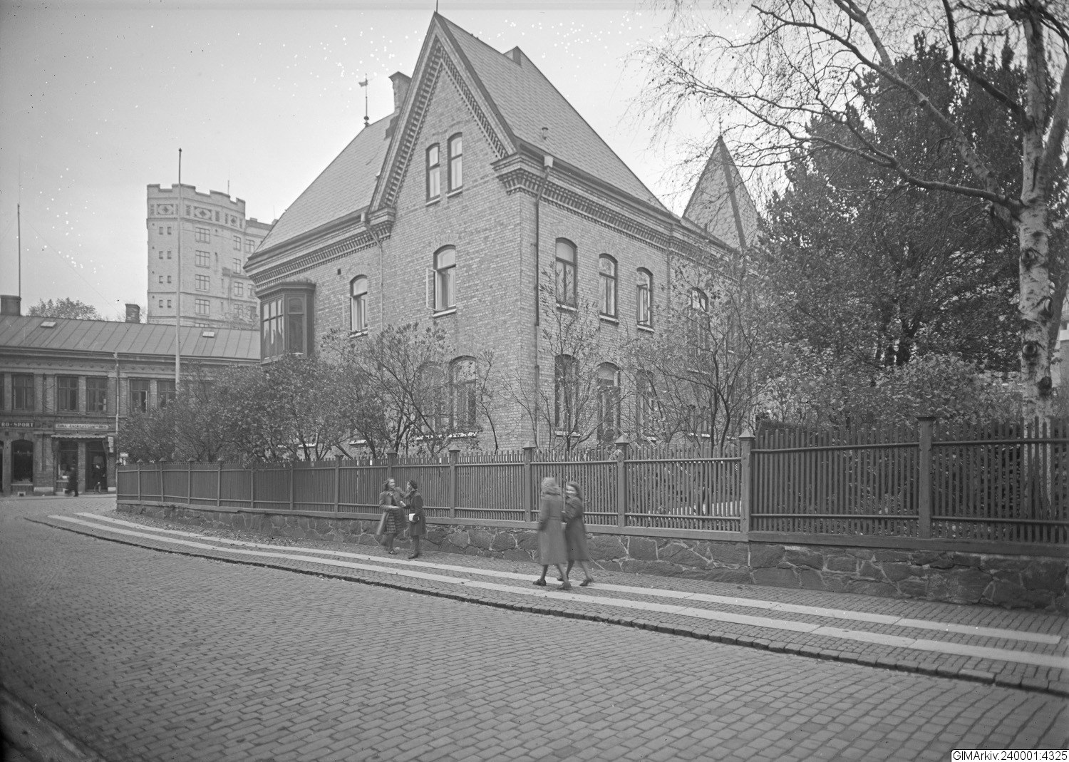Förvarad i kuvert med texten: "Handelshögskolan. Exteriört. Nov. 1945"