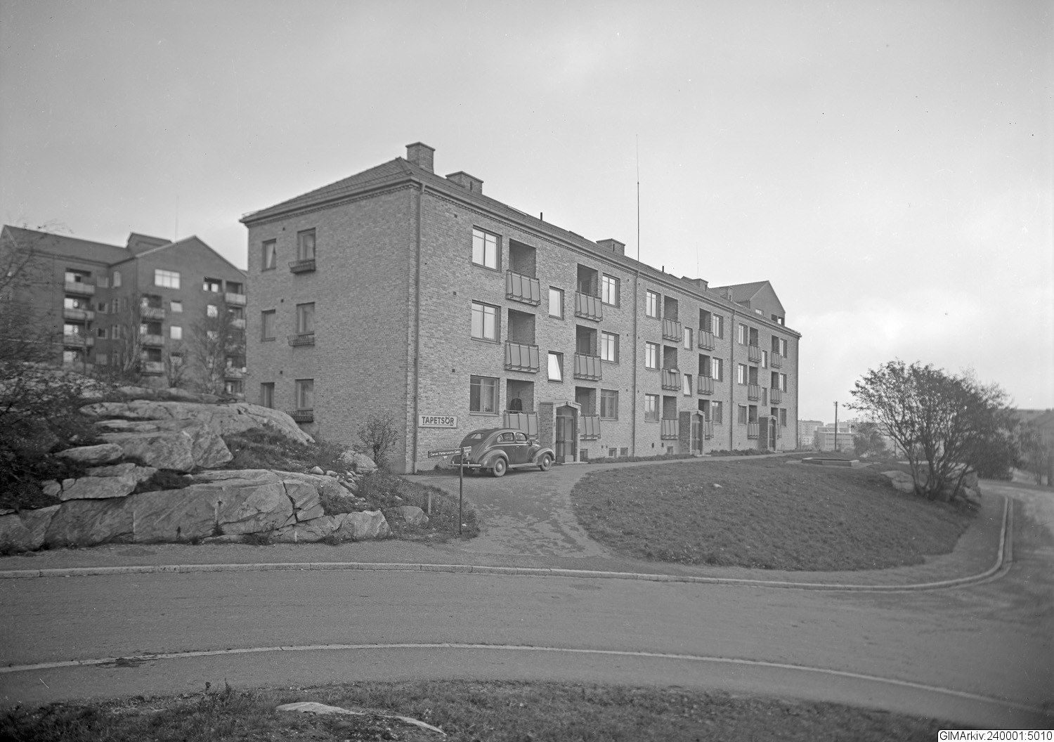 Förvarad i kuvert med texten: "Byggmäst. Nyström. Hyreshus. Raketg. X Daniel Petterssons g."